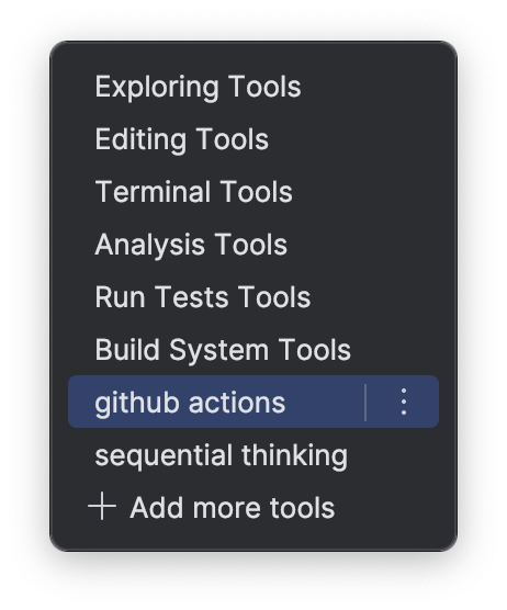. Чтобы увидеть список инструментов, выберите пункт выпадающего меню с названием подключенного сервера.